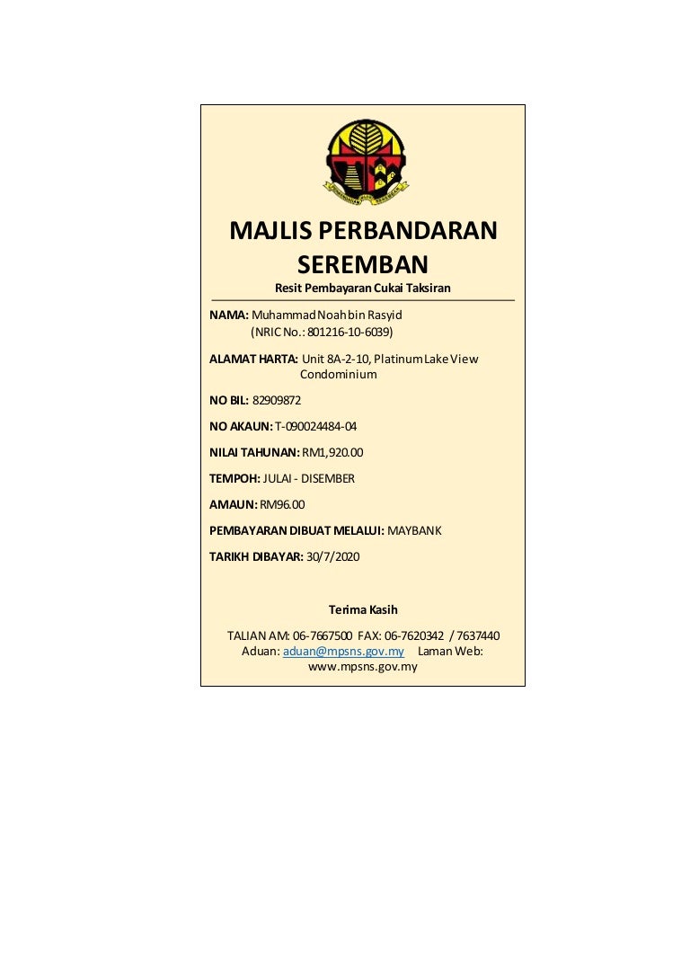 Assessment Bill 1 2022 Official Portal Seremban City Council Mbs